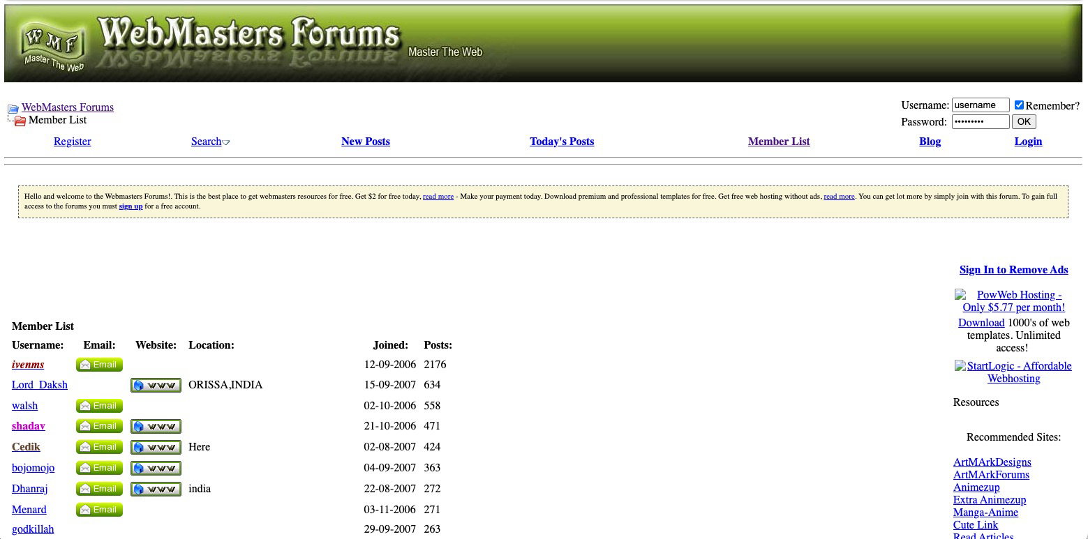 Printr-o astfel de combinație am ajuns să fiu membru pe Webmasters-Forums, un forum acum defunct și care mai poate fi vizibil doar pe Internet Archive. Am intrat pentru bani și am rămas pentru comunitate.