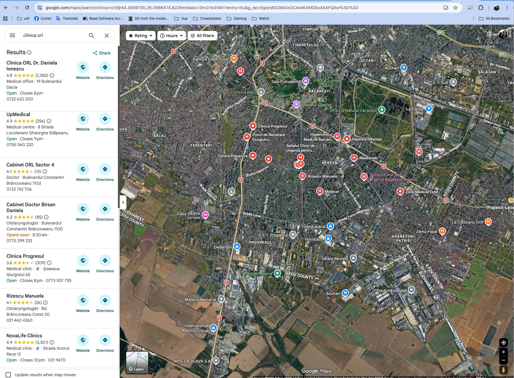 În cazul meu (București, zona dintre sectoarele 4 și 5), am avut noroc cu clinica Prevencia, care are atât un sistem de programări online, unde e ușor să vezi disponibilitatea (iar uneori ai șanse să prinzi locuri libere în aceeași zi dacă verifici în cursul zilei) și care are și o suprataxă de 60 de lei pentru consultații în regim de urgență, în aceeași zi (de preferat unor clinici care îți spun că te pot programa doar peste două săptămâni, cum am pățit eu).