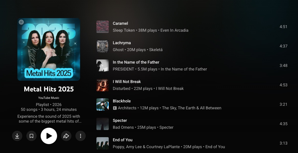 În timp ce ascultam muzică pe YouTube Music, îmi apare o recomandare de playlist cu "Metal Hits 2025". Dau click de curiozitate, să văd ce a mai apărut și... vai de capul meu!