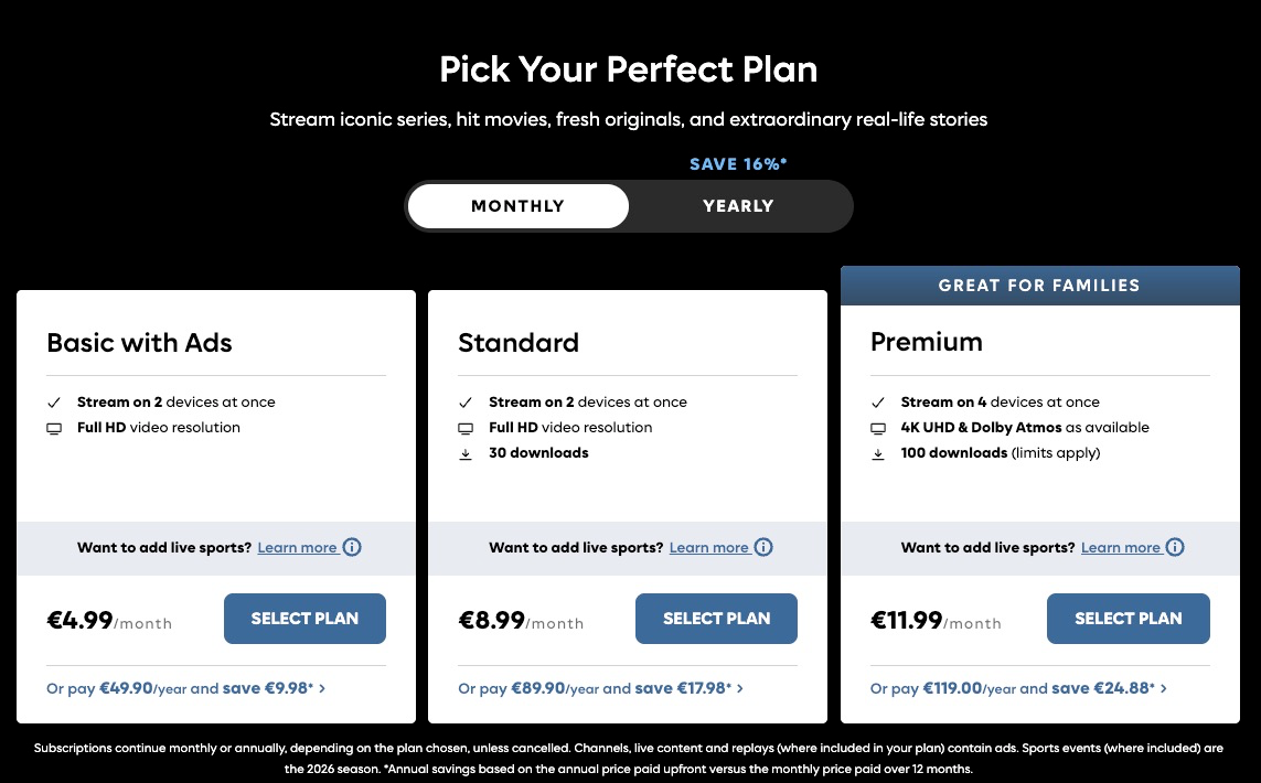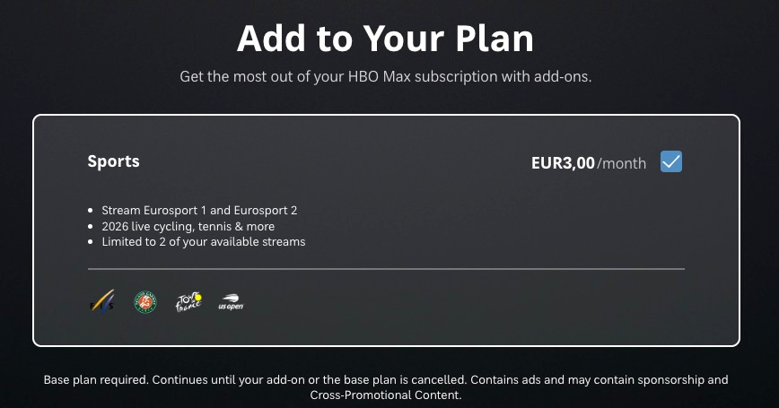 Bonus, m-am uitat de curiozitate prin opțiuni, curios dacă au vreun addon prin care scapi de reclame. Nu au, dar au unul de sport. Unde mai dai și acolo încă 3 euro pe lună... și tot poți primi reclame!